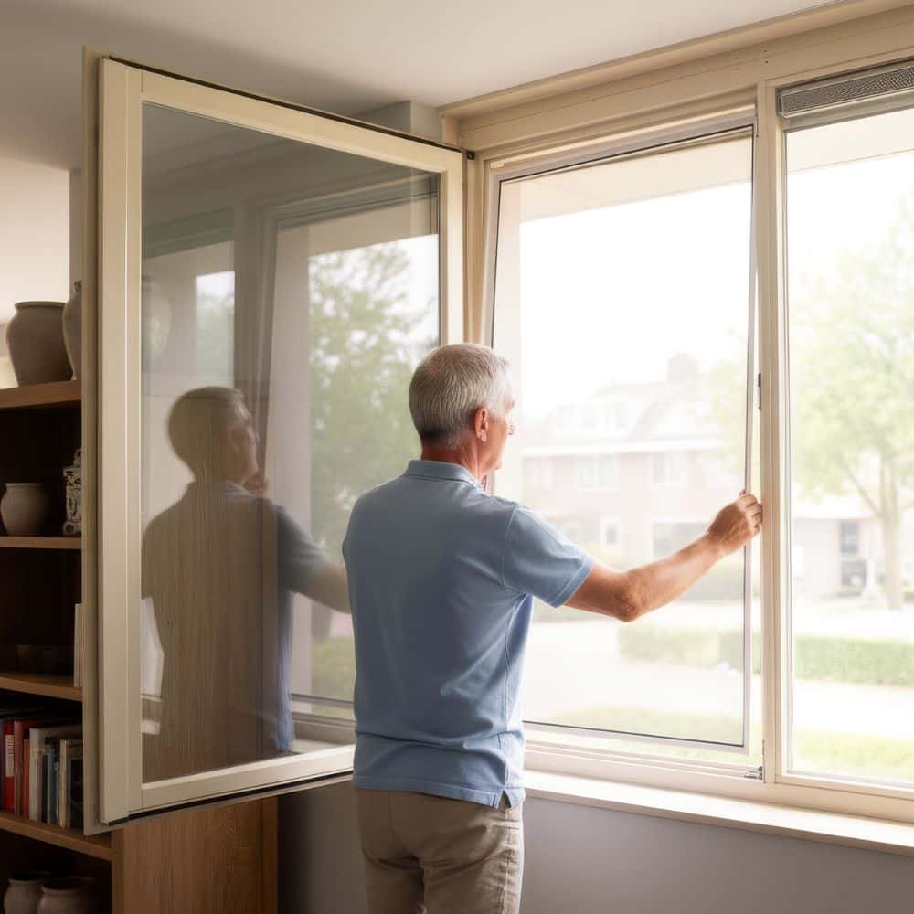 Wil je frisse lucht in huis, maar geen last van insecten? De inzetraamhor op maat van Handige Horren is speciaal gemaakt voor draaikiepramen en ramen die naar binnen draaien. Dankzij het slimme klemsysteem plaats je de hor makkelijk, zonder te boren of schroeven. Het frame is van hoogwaardig aluminium, roestvrij en bestand tegen weer en wind. Zo gaat de hor jarenlang mee. Je raam blijft gewoon soepel open en dicht gaan, terwijl de hor stevig op zijn plek blijft zitten.