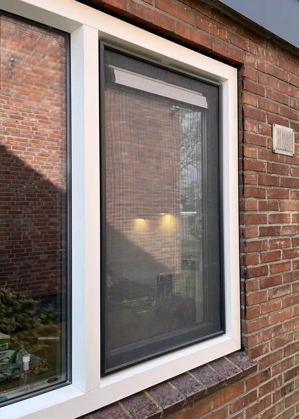 De inzetraamhor op maat van Handige Horren is dé oplossing om frisse lucht binnen te laten en insecten buiten te houden. Dankzij het slimme ontwerp plaats je de hor eenvoudig zonder te boren of schroeven. Het systeem klemt stevig in het kozijn en blijft goed zitten, terwijl je raam moeiteloos open en dicht gaat. Geschikt voor zowel kunststof als houten kozijnen.